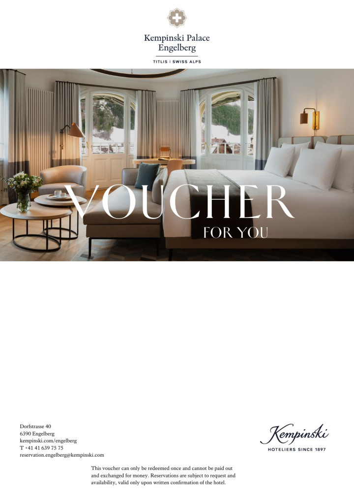 Spoil your loved ones with an overnight stay voucher from Kempinski Palace Engelberg.
